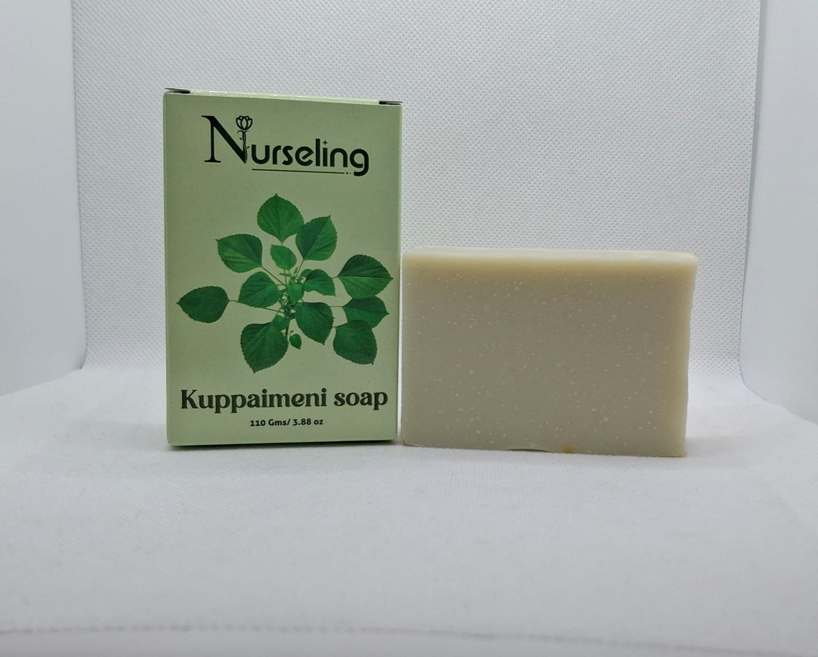 Kuppaimeni Soap is a natural herbal cleanser made from pure Kuppaimeni (Indian Nettle) leaves, known for its powerful skin-purifying and antibacterial properties. It helps reduce acne, control excess oil, and leaves your skin feeling fresh, clean, and nourished.